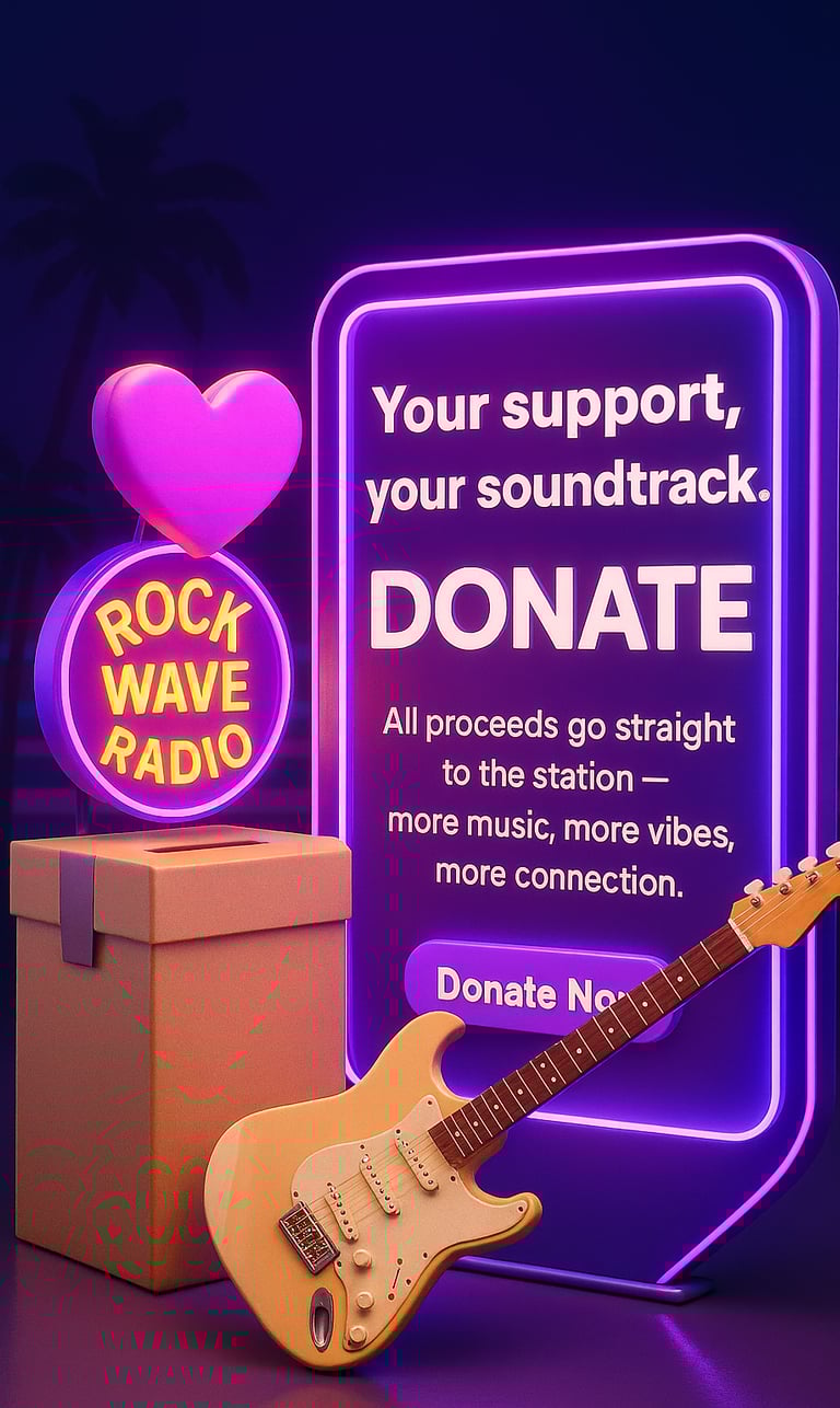 Every donation helps Rock Wave Radio cover supplies, secure proper music licensing, and fuel our dream of launching a dedicated listener app — so you can enjoy the music you love anytime, anywhere.